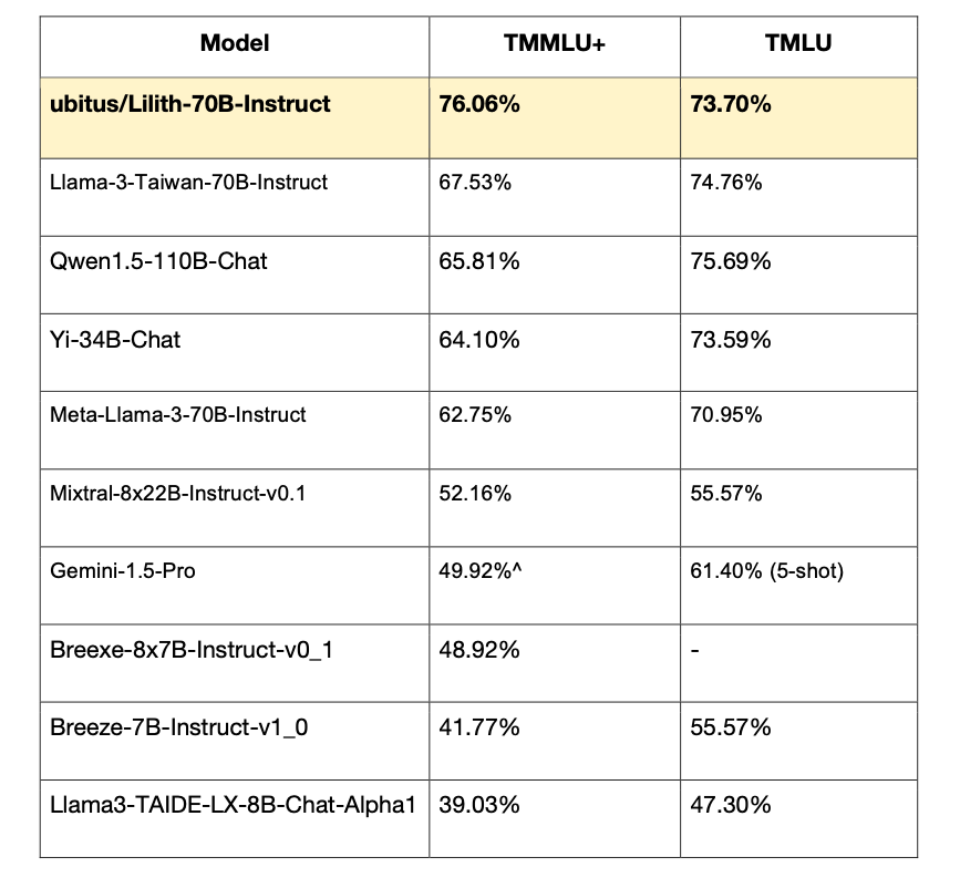 株式会社ユビタスは繁体中国語の大規模言語モデルLilith-3.3-70Bを開発し、中国ベンチマークに対して高得点を獲得しました。またメタプラットフォーム社からも認知されました。